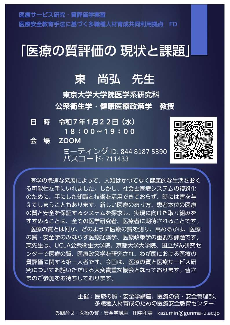 FD講演 「医療の質評価の現状と課題」を開催しました