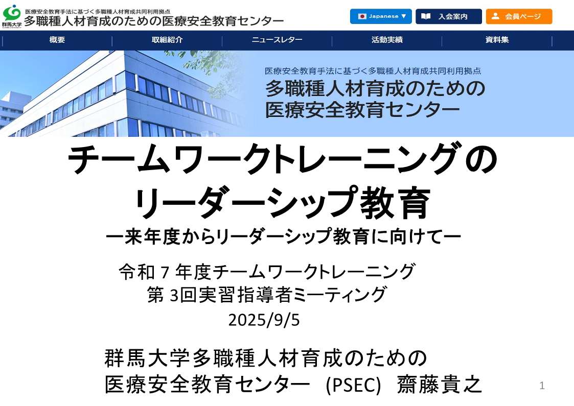 医療安全教育と群馬大学多職種人材育成のための医療安全教育センター(PSEC)のこれから